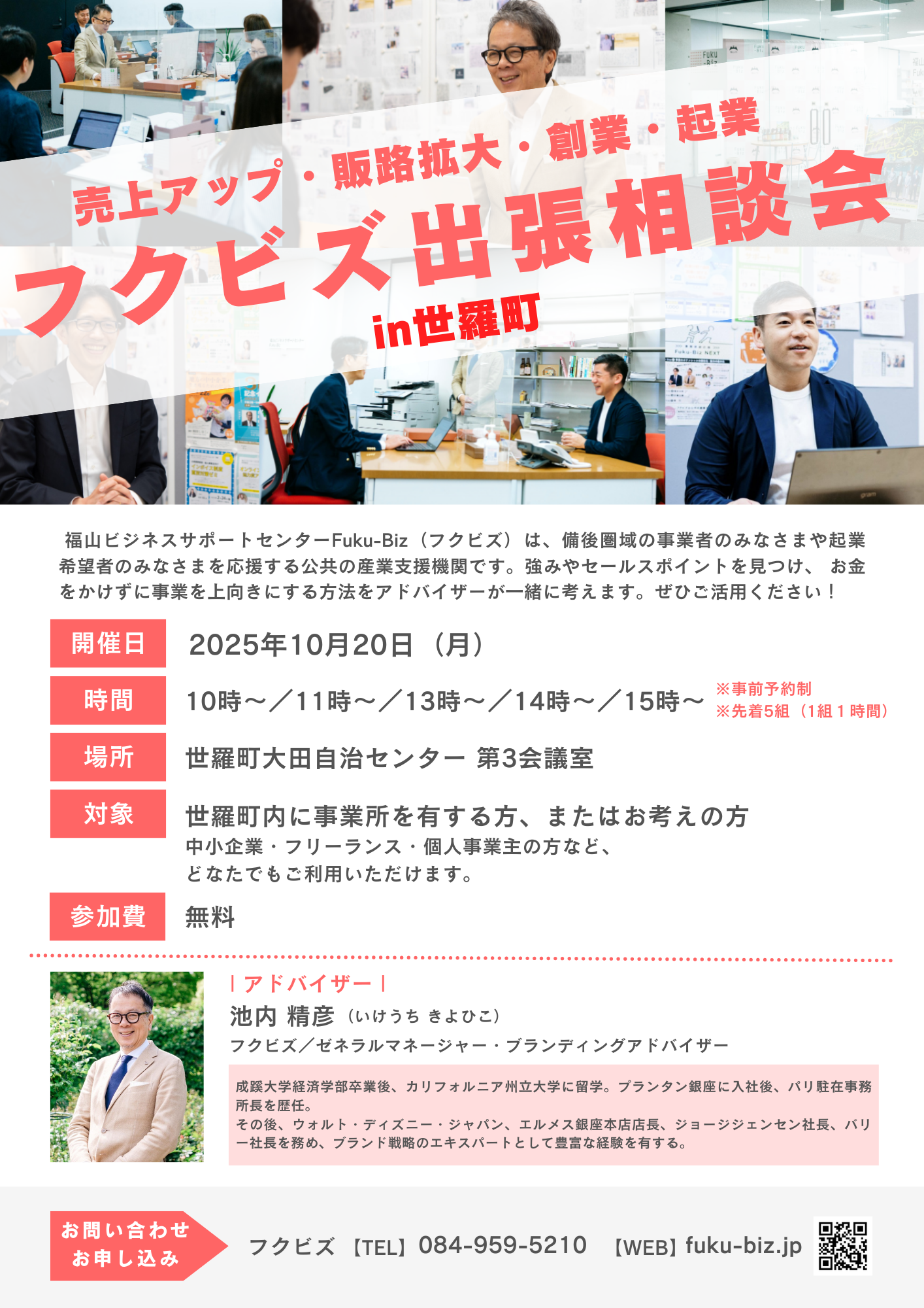 10月20日(月)に世羅町大田自治センターでフクビズ出張相談会を開催します!
