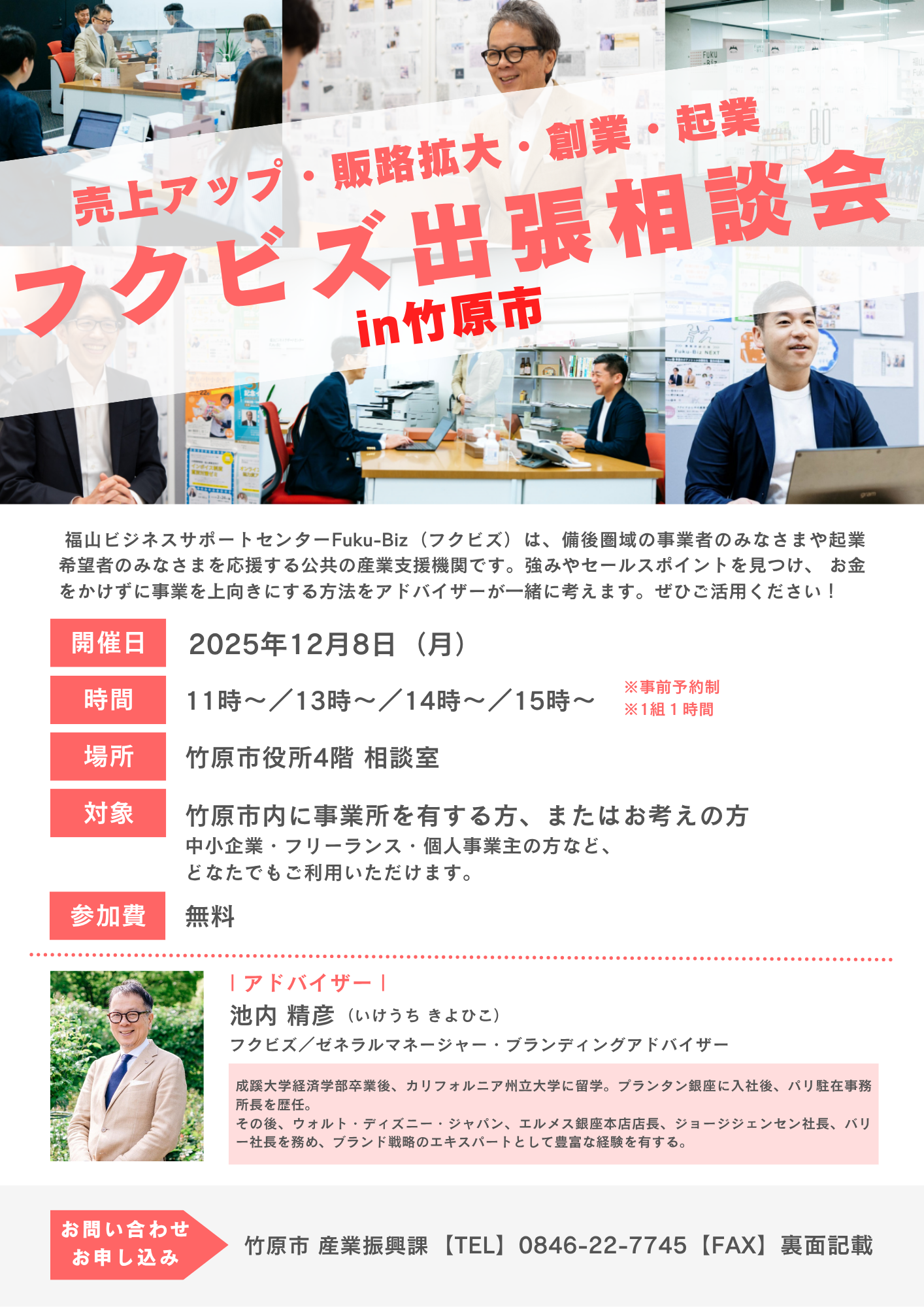 12月8日(月)、竹原市役所でフクビズ出張経営相談会を開催します!