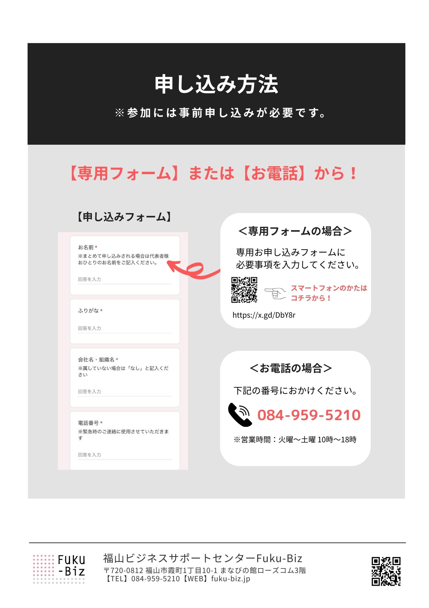 【場所】フクビズ(福山市霞町1丁目10-1 まなびのローズコム3階)
