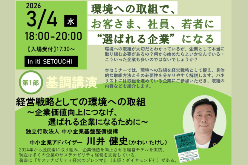 2026年2月12日(木)、グリーンな企業セミナー「1本の水から世界を変える、事業承継から挑戦したサ […]